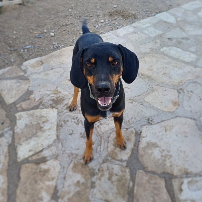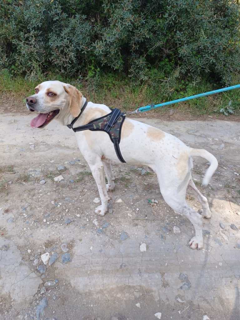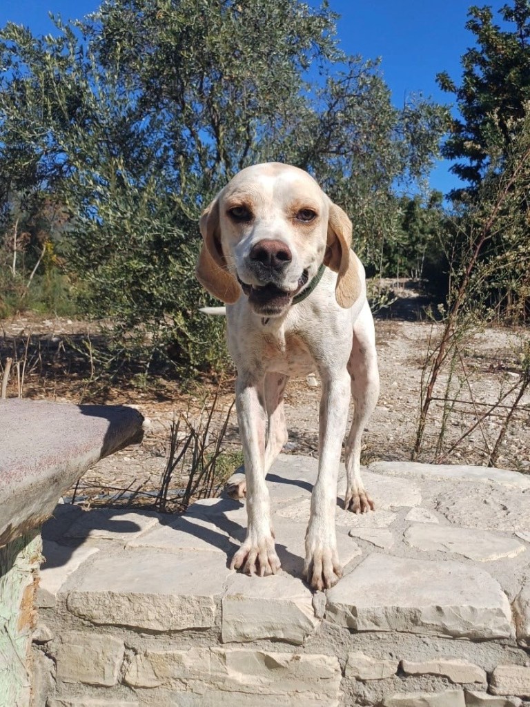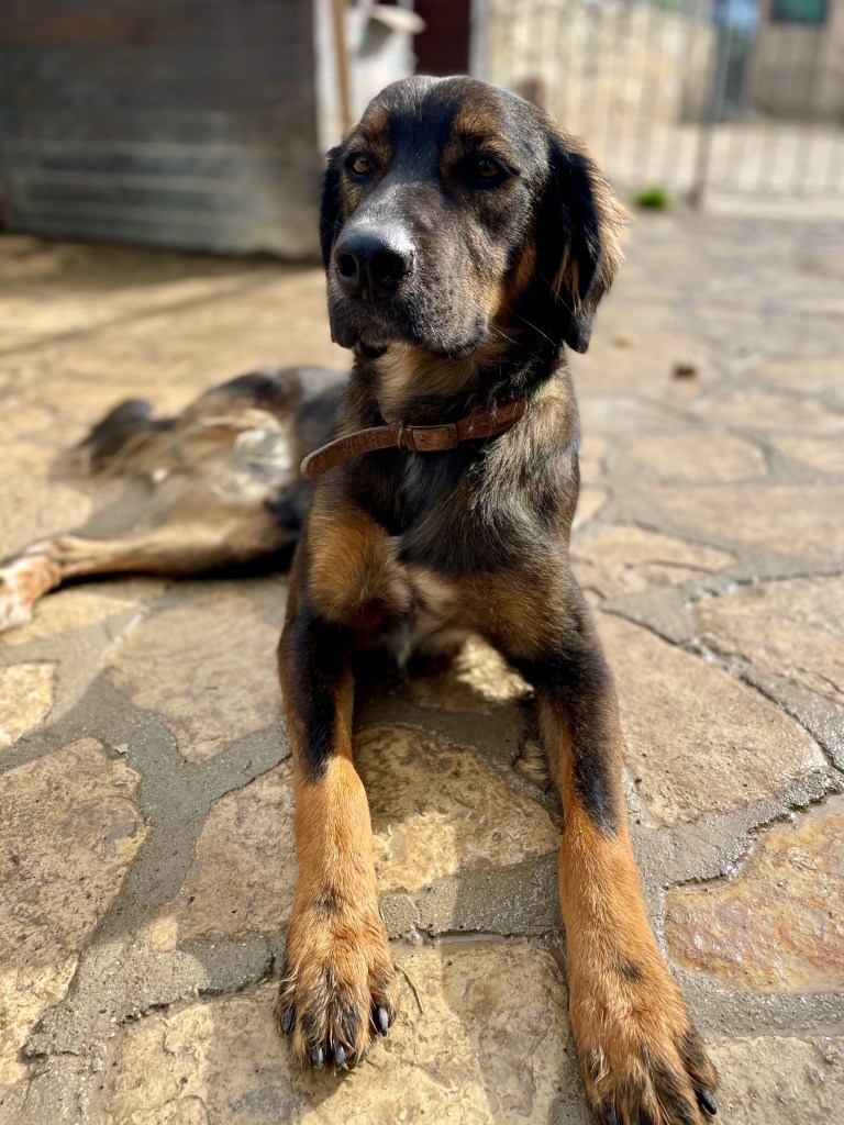 Paris was found alone in a nearby village in summer 2025, aged around one year old. He is a gentle, sensitive boy who may be shy at first, but once he feels safe, his affectionate nature truly shines. Paris adores other dogs and would thrive in a calm, nurturing home with a canine companion and patient humans who can help him continue to grow in confidence.