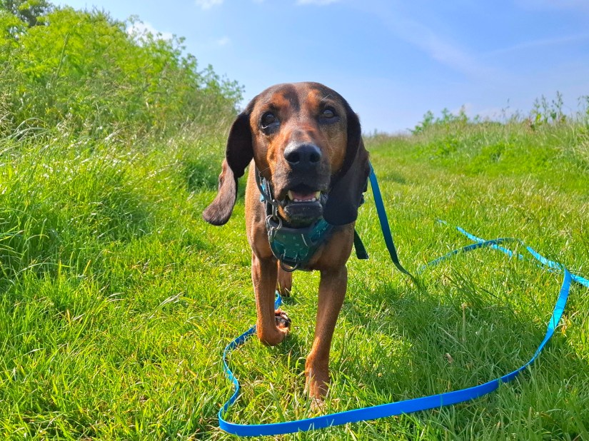 “A year after losing my wonderful boy Barney, I started to tentatively consider looking to adopt a new dog, as our house wasn’t quite the same without a four-legged friend with us. I saw Rooney on the Moonacre Facebook page and there was something about him that reminded me of Barney and I knew I had to have a dog with as much character. I wasn’t ready emotionally at that point to do anything about it and I did have concerns about the fact that Rooney came with a mended back. I didn’t want to go through further heartache any time soon.